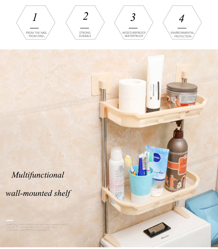 【 Нескользящий Настенный Дизайн 】наш дизайн вдохновлен ультра-экономичной идеей из Японии. По сравнению с традиционными туалетными полками для ванной комнаты с четырьмя ножками, наша полка значительно упростила установку и освободила пространство. Уникальная Нижняя Скоба освободит вас от суждения о выпадении вашей полки для ванной комнаты. Кроме того, для двойной защиты предусмотрены дополнительные клеевые основы.