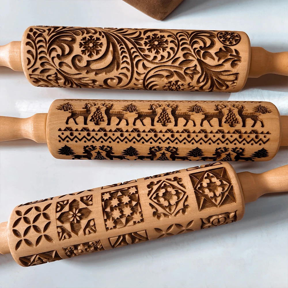 Отзывы о Скалка деревянная с тиснением и винтажным рождественским рисунком аксессуары