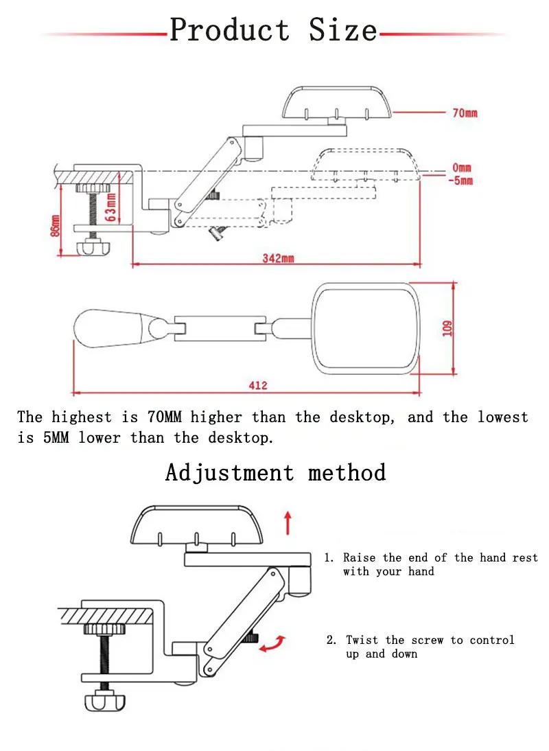 Благодаря этому ручному отдыху, он поможет вам избежать длительного скручивания во время работы/игры и эффективно снять усталость рук и плеч.