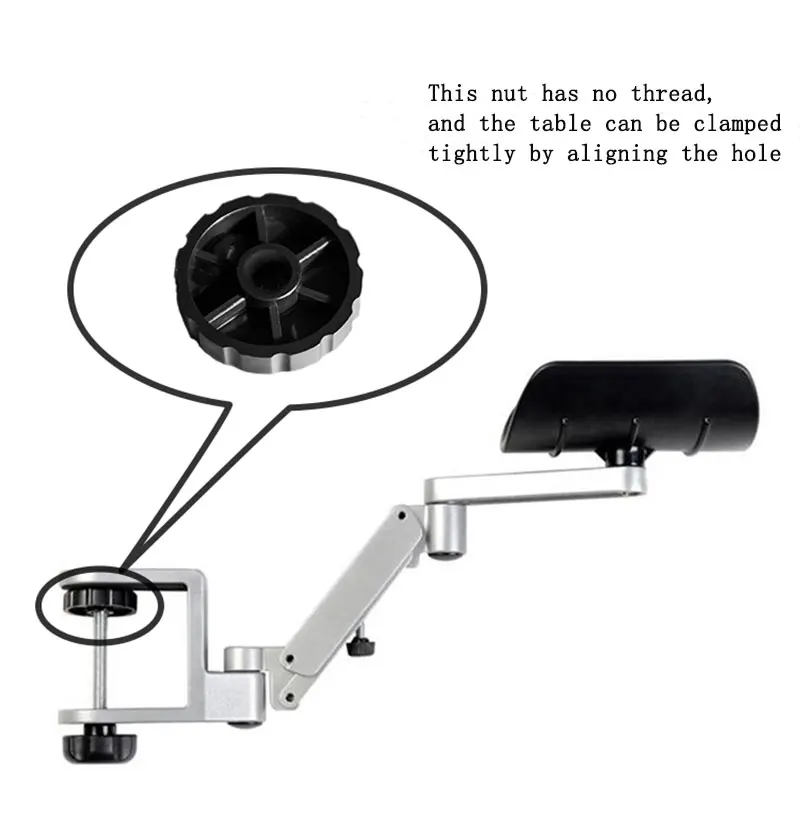 Прочный кронштейн из алюминиевого сплава может быть вытянут, увеличивая расстояние от экрана до тела, чтобы снять усталость глаз. Прочная Подушка ABS имеет мягкую поверхность, которая может уменьшить вес локтя на 90%.