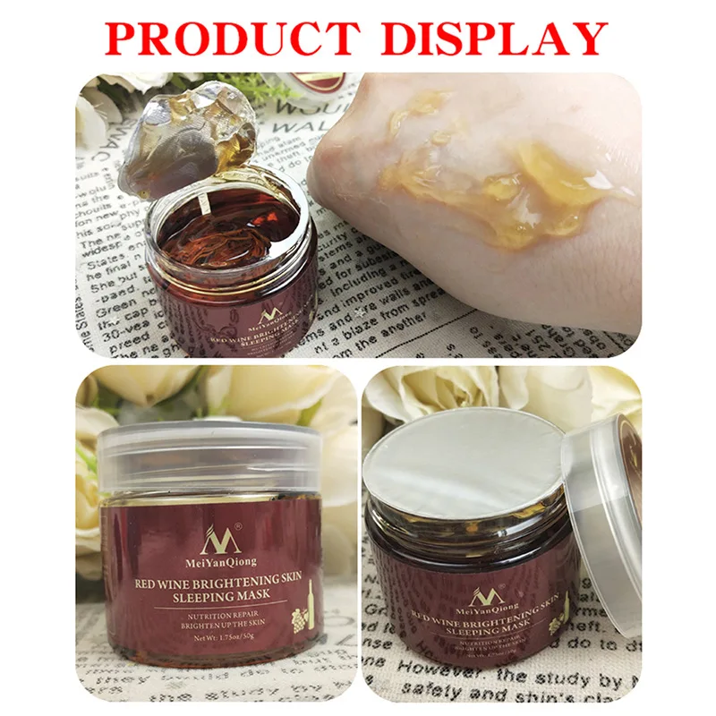 Восстанавливает питание осветляет кожу увлажняющий красный спирт сталкивается с никотинамидом, который питает и восстанавливает чистую воду, бережно ухаживает за кожей, восстанавливает поврежденную кожу во время сна, углубляет поры, восстанавливает влагу и питание, фиксирует влагу и увлажняет, улучшает сухость кожи, шероховатость, тонкие линии и т. д. Делает кожу мягкой и блестящей. Использование: После очищения кожи в ночное время нанесите правильное количество этого продукта равномерно на лицо, немного массируйте, а затем ложитесь спать после впитывания маски, не нужно мыть, затем промойте его водой утром.