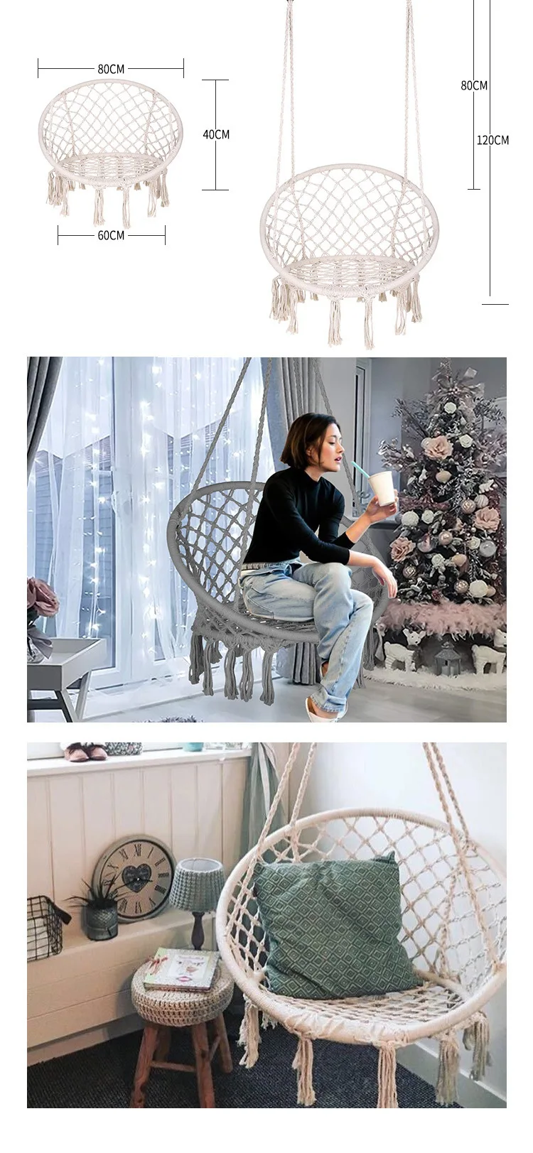 Отзывы о Подвесной гамак бежевое плетеное хлопковое кресло-качели для улицы дома и сада