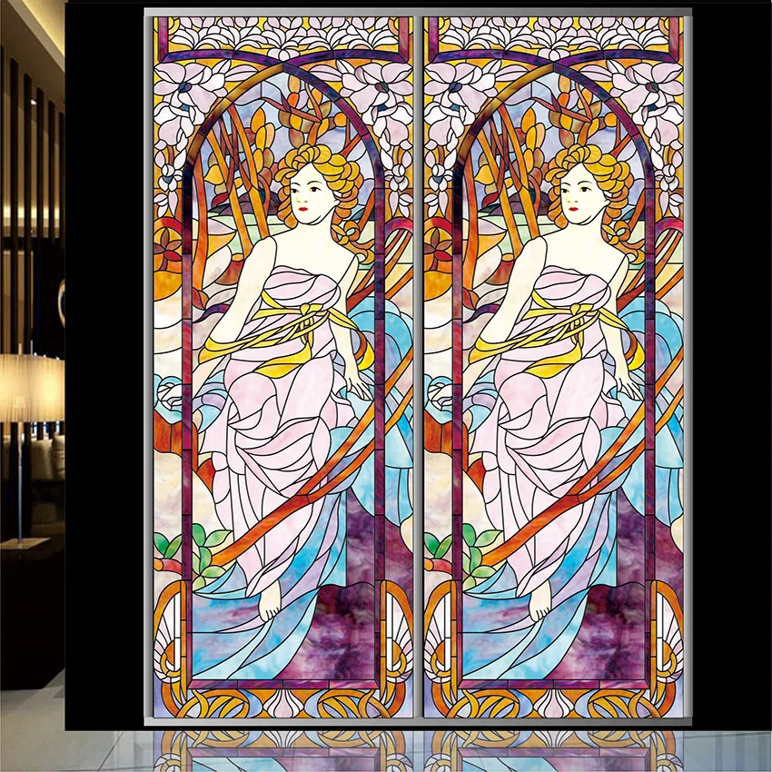 Индивидуальный размер церковная оконная пленка без клея электростатические скрабы полупрозрачные церковные витражи и пленка для дверей 40 см x 60 см