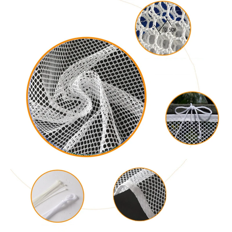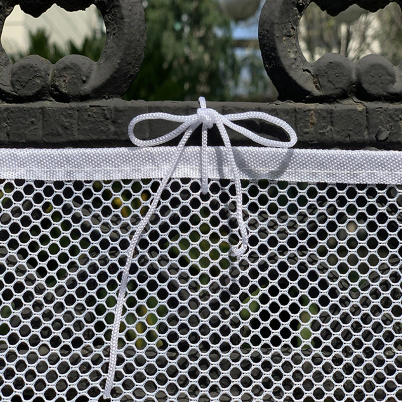 4. Простота установки: Используйте пластиковую подвесную пряжку, чтобы пройти через сетку, или используйте нейлоновую веревку, чтобы зафиксировать сетку и перила вместе, чтобы зафиксировать сеть. Если перила длиннее, вы можете использовать тот же метод установки для подключения двух или более сеток. Если перила относительно короткие, сеть может быть сложена и установлена.