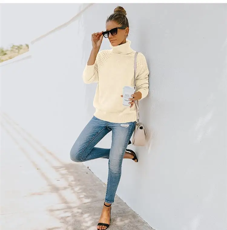 Отзывы о Модный вязаный женский свитер с высоким воротником простой пуловер женские
