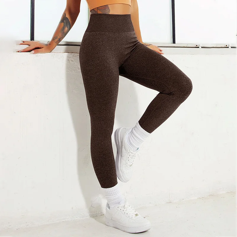 Отзывы о Женские бесшовные трикотажные леггинсы с эффектом пуш-ап и высокой талией -