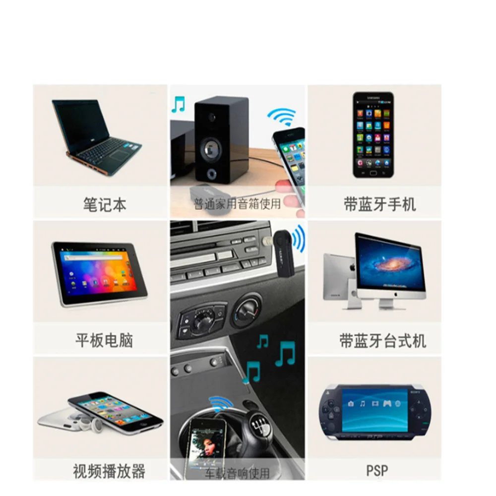 1. Двусторонний разъем: Этот аудиоприемник использует два способа 3,5 мм металлический аудио разъем, который отстегивается, компактный, удобно брать с собой.