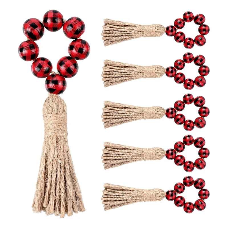 Узор в клетку буйвола: каждое кольцо для салфеток с деревянными бусинами для Хэллоуина натянуто несколькими бусинами на прочной веревке, не легко распускать или сломать, пожалуйста, будьте уверены в использовании, И классический узор в клетку буйвола напечатан на поверхности круглых деревянных бусин, не легко выцветать Или хлопать с течением времени