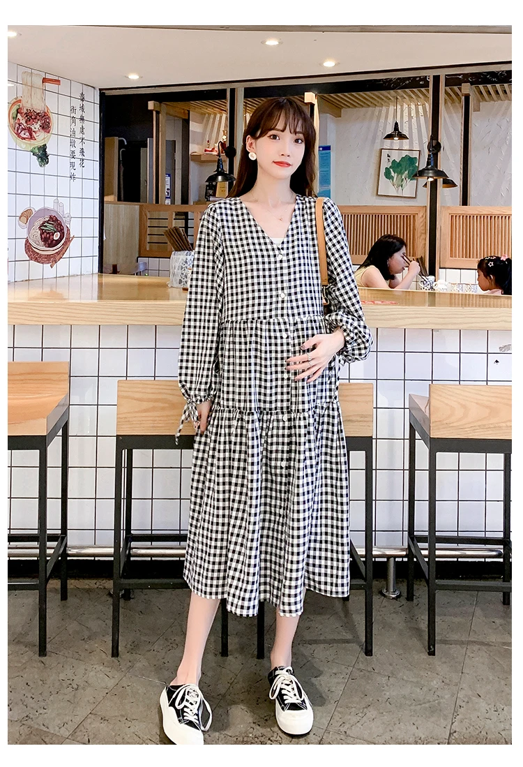 Отзывы о Осеннее модное Свободное длинное платье-рубашка в клетку для беременных - купить