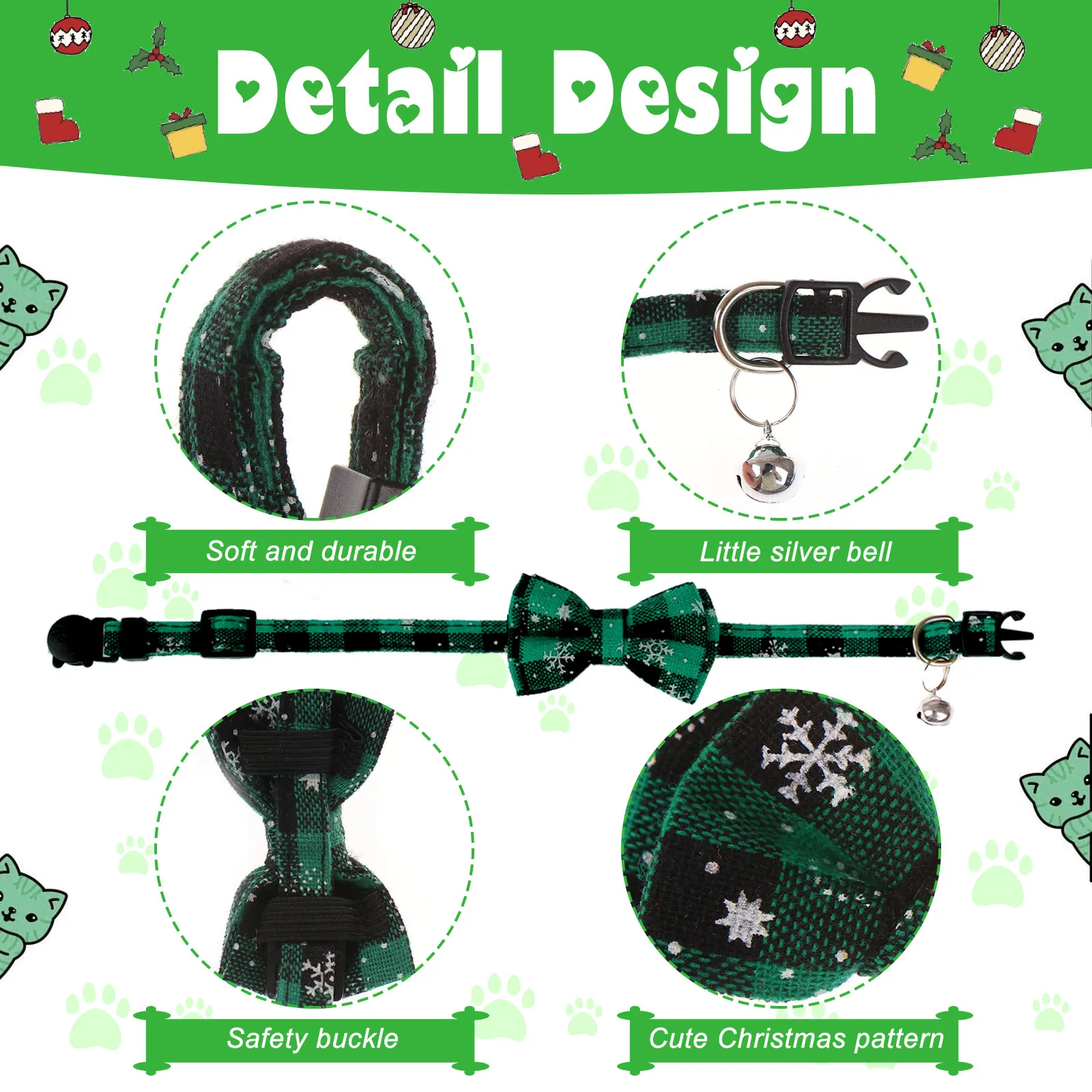 Красные и зеленые регулируемые воротники, спроектированные со снежинками и клетчатыми принтами и колокольчиками,