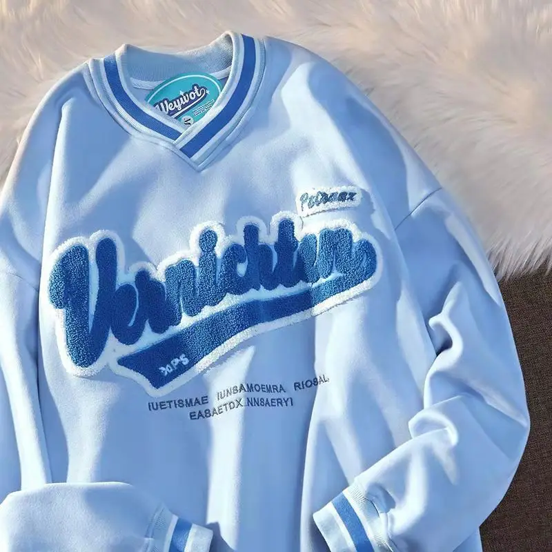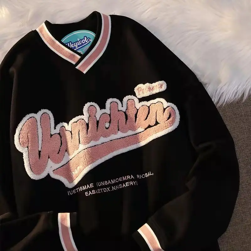 Отзывы о Винтажная толстовка с V-образным вырезом для мужчин и женщин свитшот вышивкой