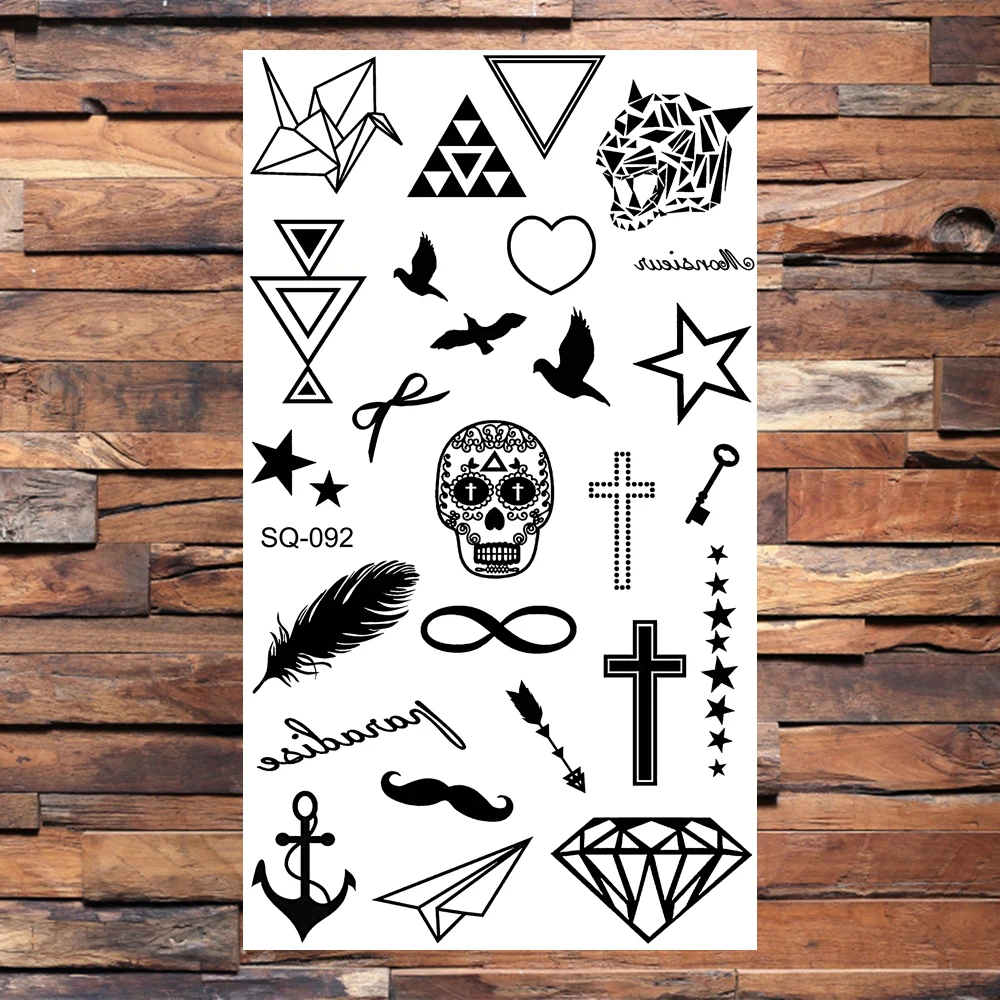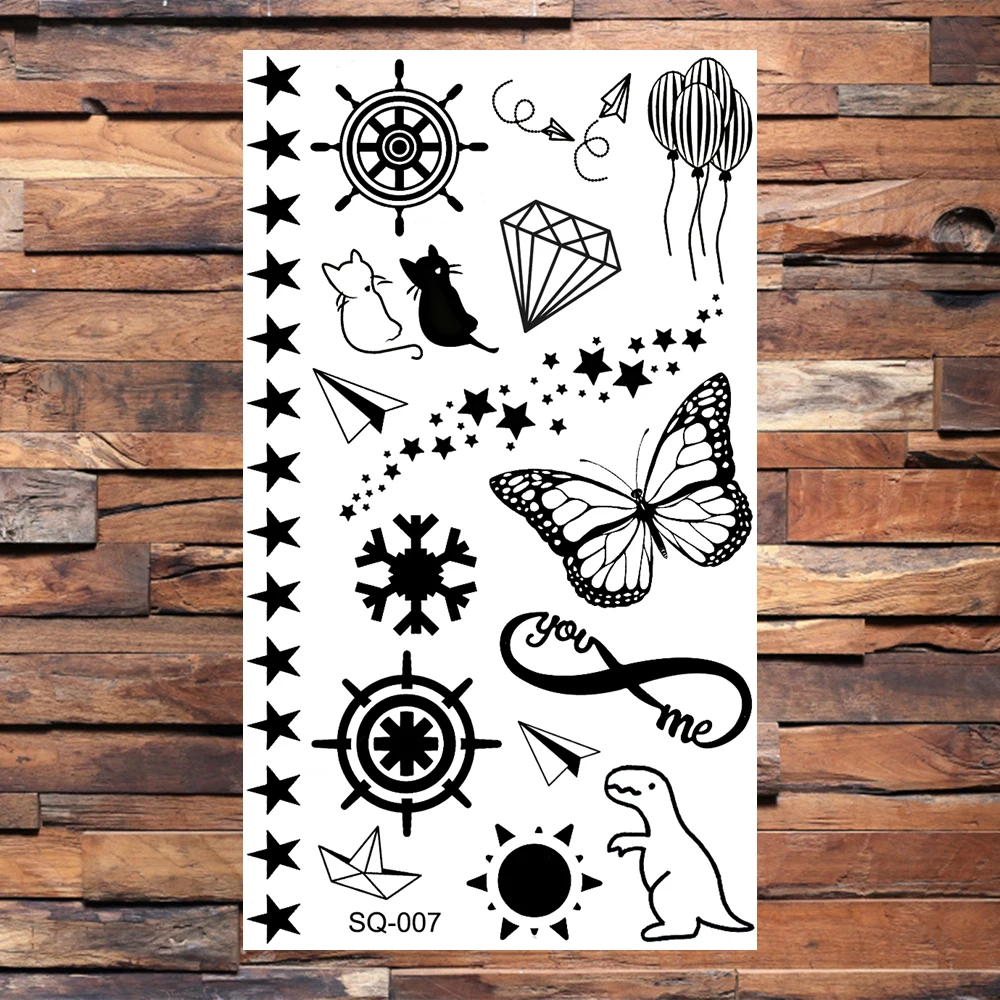 Черные Временные татуировки бесконечности для взрослых детей ЭКГ геометрические следы поддельные алмазные татуировки стикер на шею руки татуировки копье