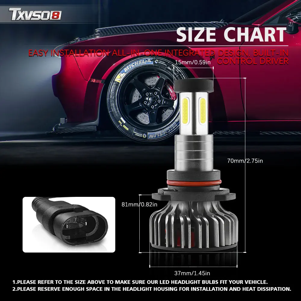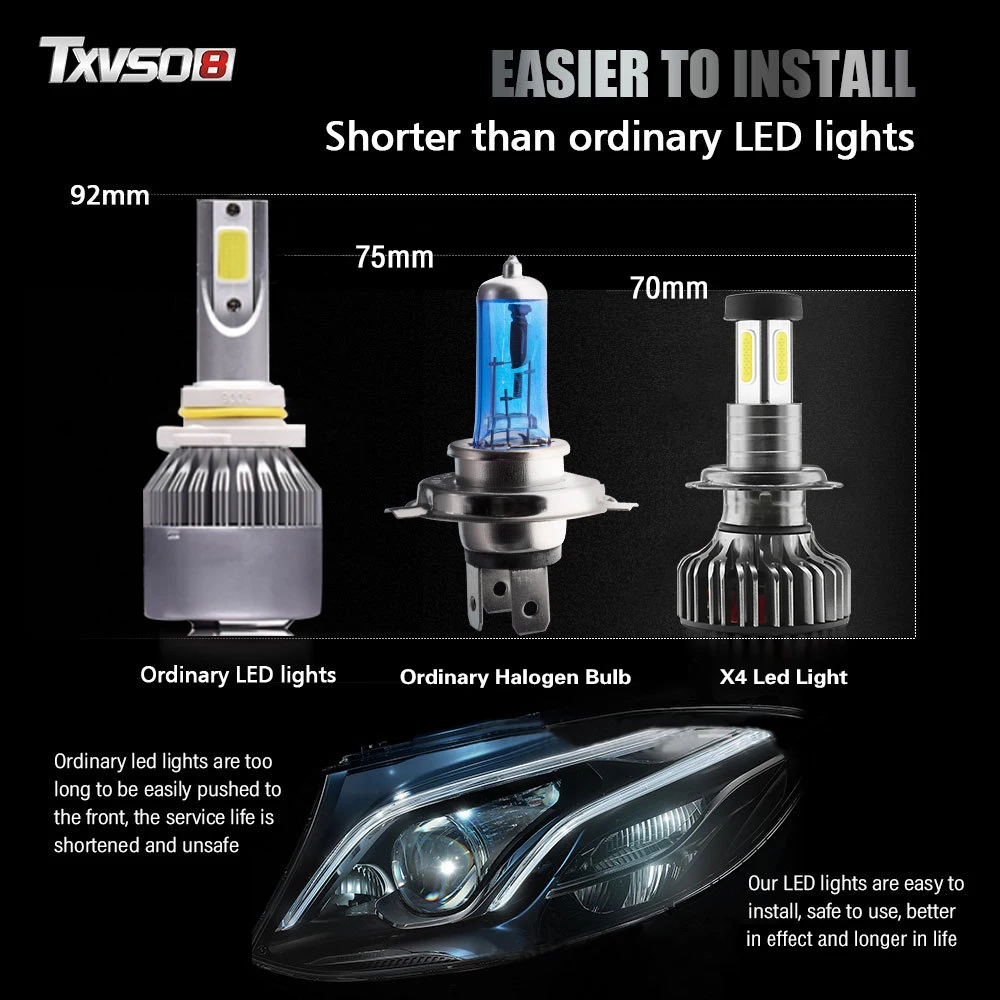 ★【Простая установка 】 светодиодный светильник TXVSO8 X4 для замены всех корпусов и розеток. Перед заказом Проверьте руководство вашего транспортного средства, чтобы подтвердить необходимый размер лампы для желаемого применения (Ближний свет, дальний свет, противотуманный светильник)