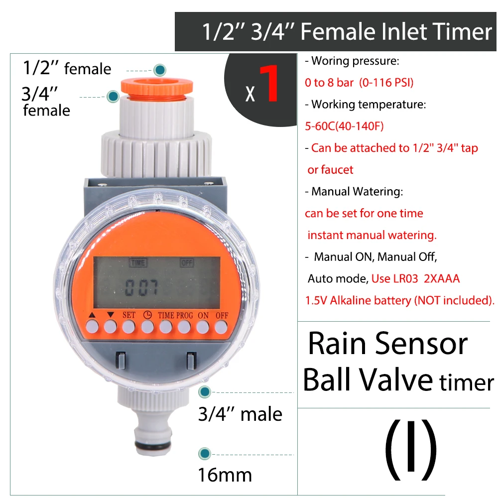 -Таймер может быть использован для установки программы полива для вашего сада, так что спринклеры и системы орошения включается автоматически. Есть четыре различных таймера на выбор.