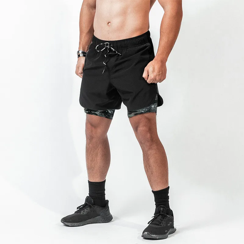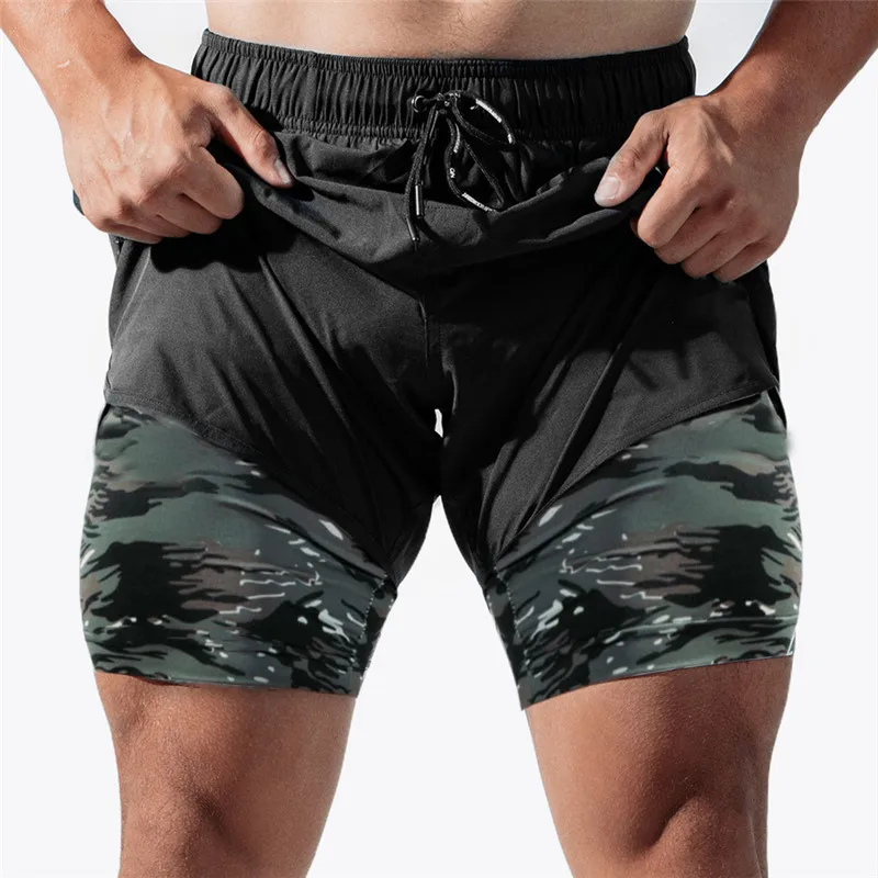 Отзывы о Мужские спортивные шорты 2 в 1 камуфляжные с карманами на молнии для бега и