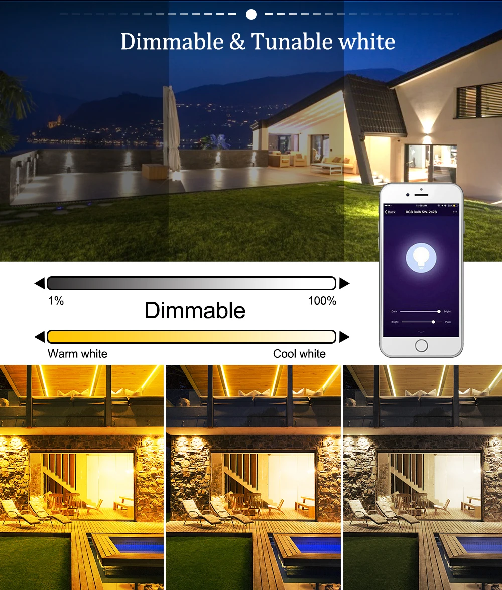 Отрегулируйте включение/выключение, яркость и меняйте светильник с помощью голосовой команды. (Необходимо соответствовать умным динамикам)
