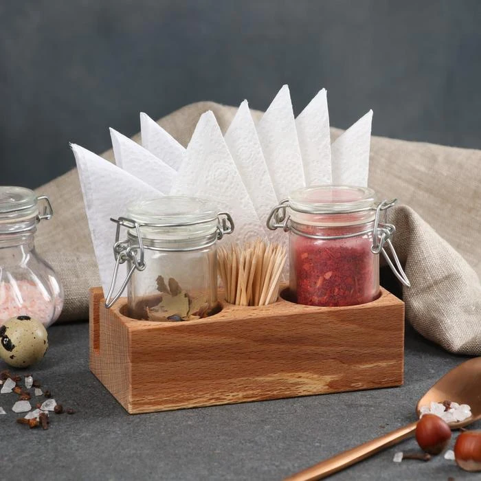 Подставка для приправ и зубочисток "Салфетница", 14*8*4 см, массив бука 7134132