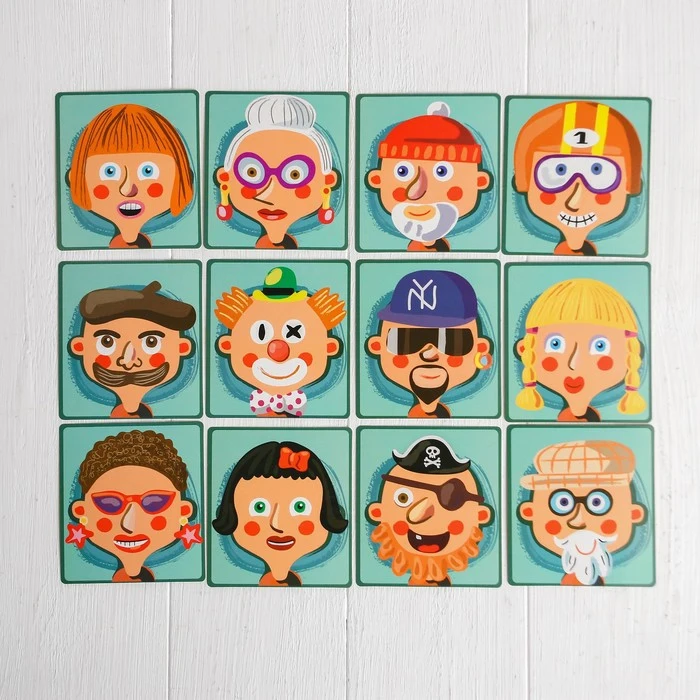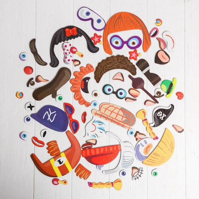 Конструктор магнитный «Весёлые рожицы»: карточки, маркер, магнитные элементы