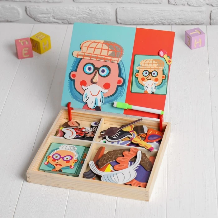 Отзывы о Конструктор магнитный Весёлые рожицы: карточки маркер магнитные элементы |