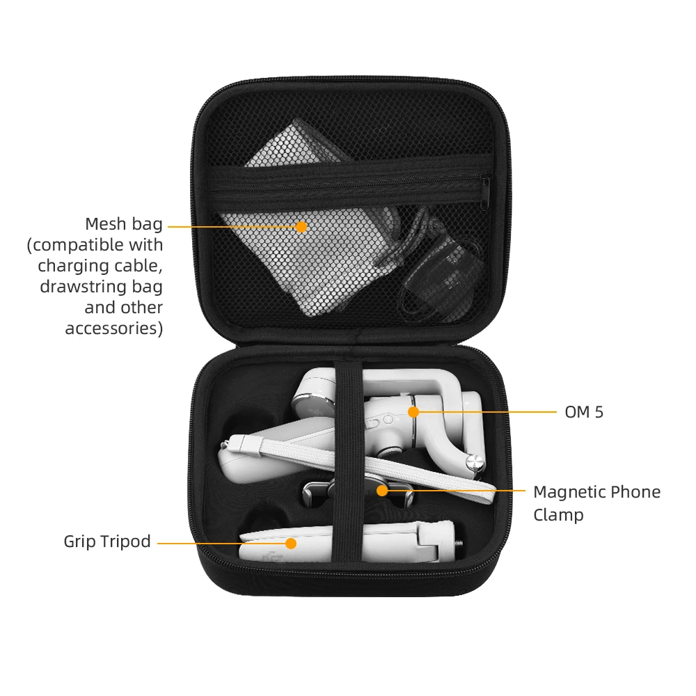 1. Храните OM5/OM 4 SE /Osmo Mobile 3 gimbal стабилизатор, когда вы находитесь вне дома, И он совместим с различными дронами и пультами дистанционного управления, такими как Mavic Mini 1/2 / SE/Mavic Pro/ Mavic Air/Air 2 /Air 2S и т. д.;