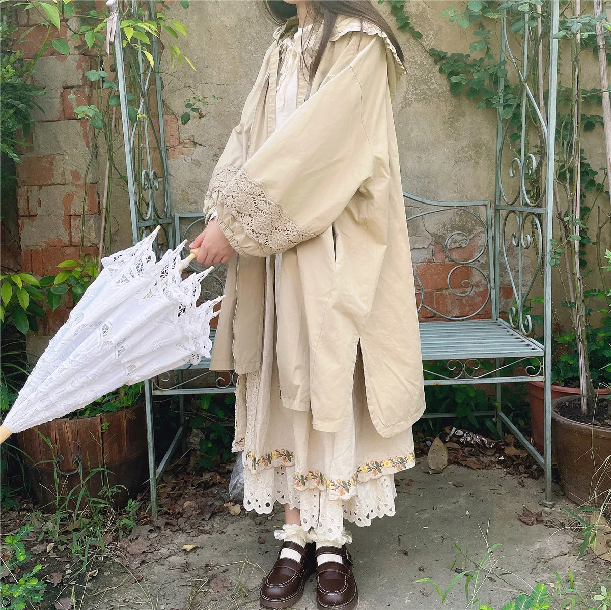 Отзывы о Осенняя Женская Ретро кружевная Ветровка цвета хаки средней длины со съемной