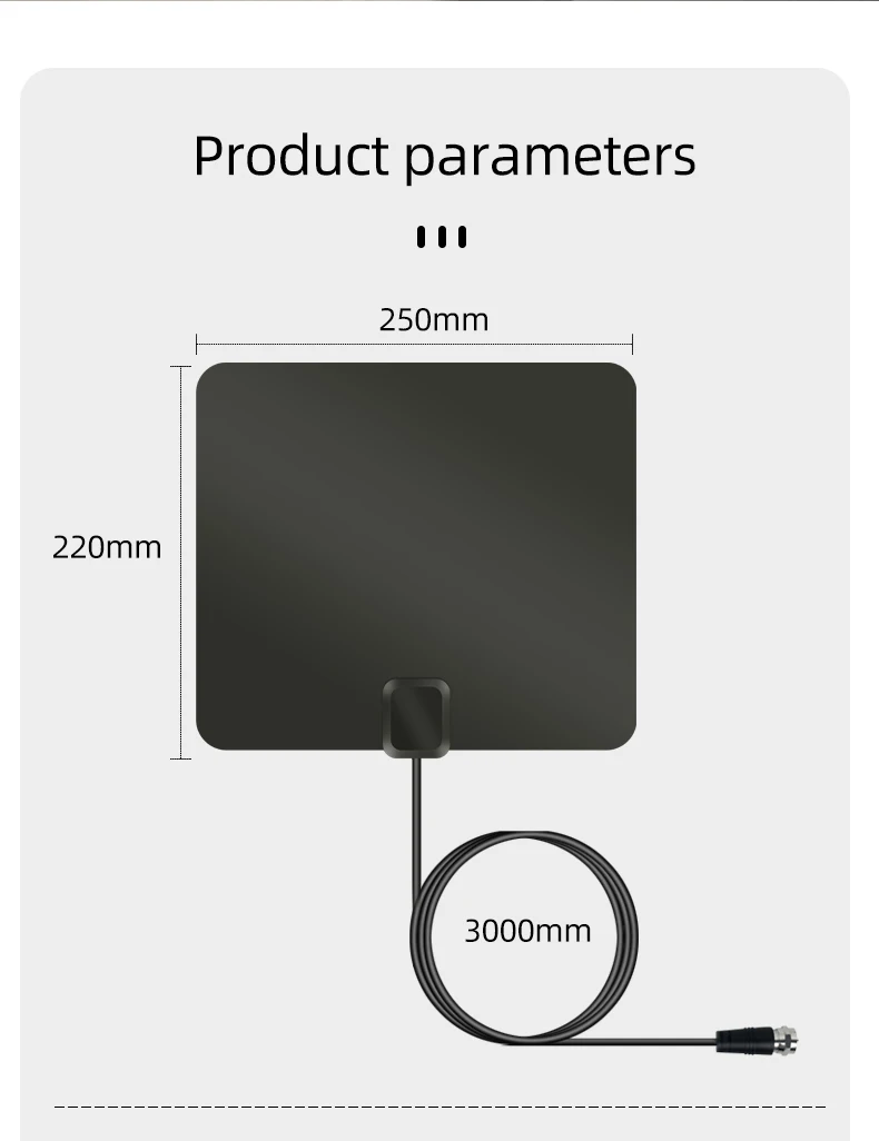 3000 мм Прочный коаксиальный кабель:Высококачественный коаксиальный кабель обеспечивает возможность размещения антенны в любом месте вашего дома для приема сигнала. Эта прочная конструкция устраняет помехи сигнала, увеличивает срок службы антенны.