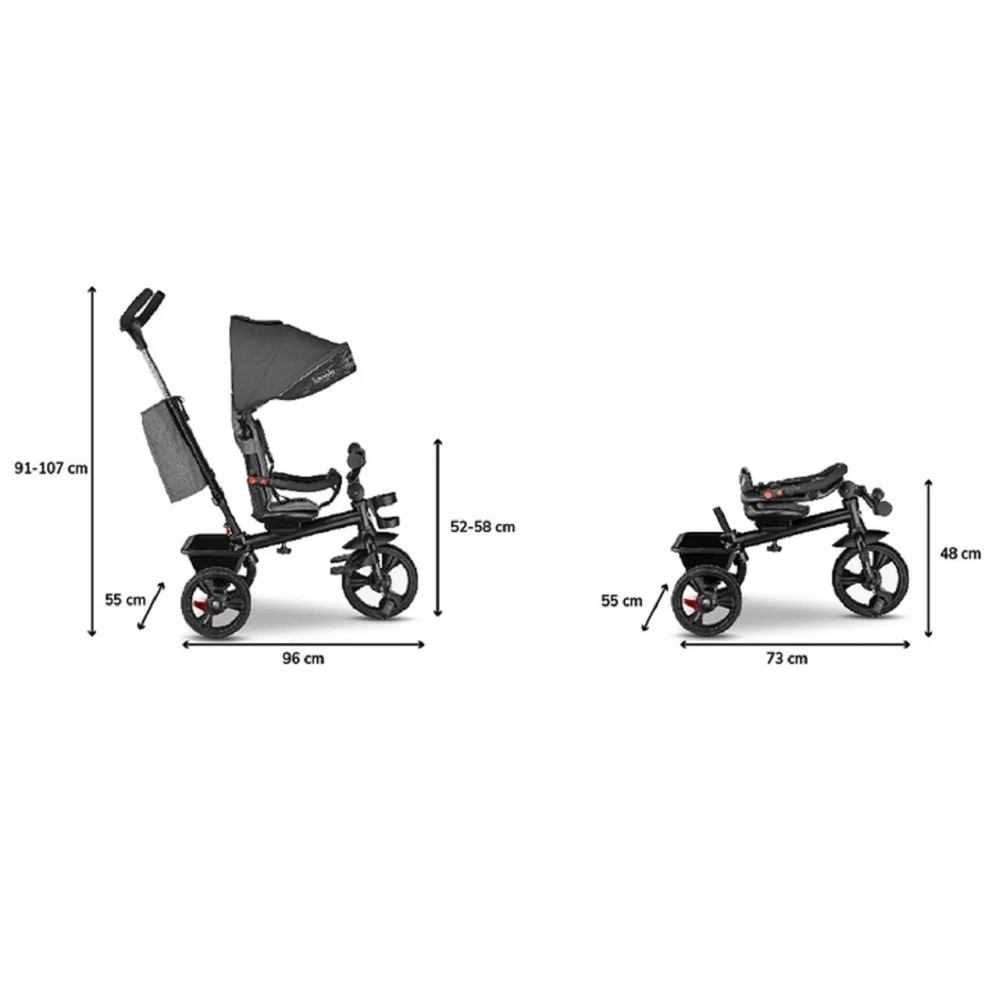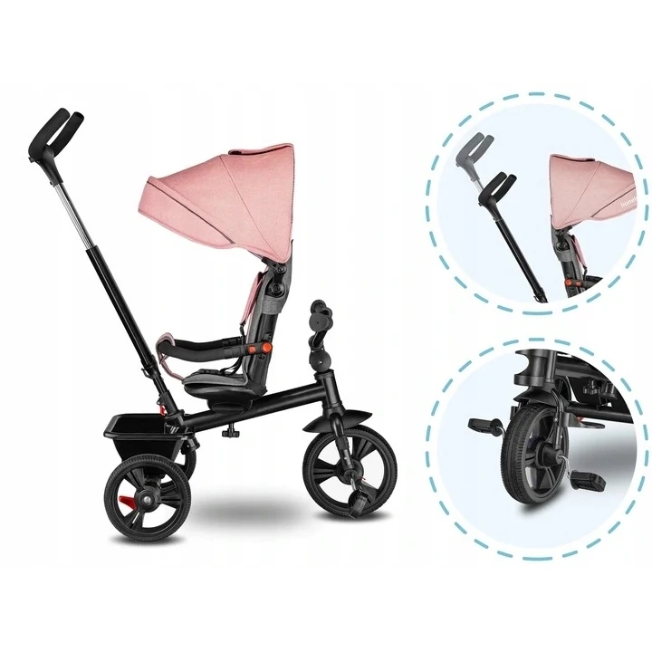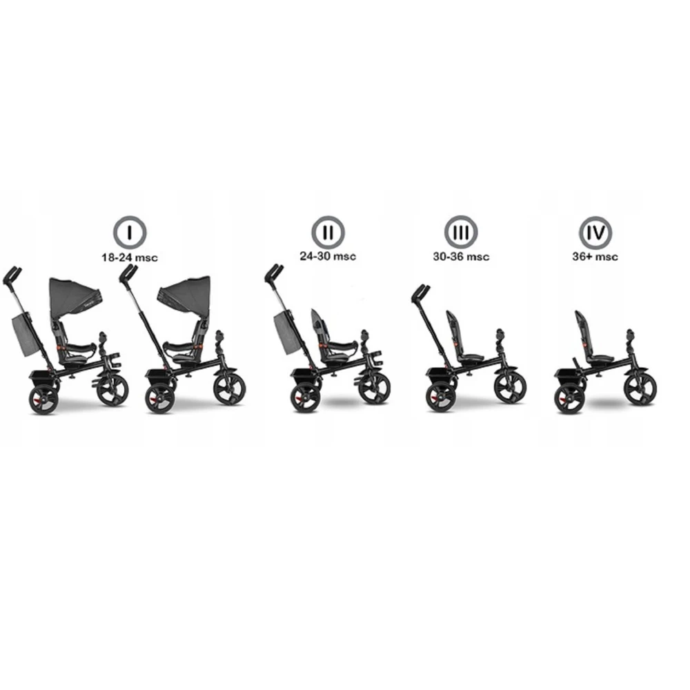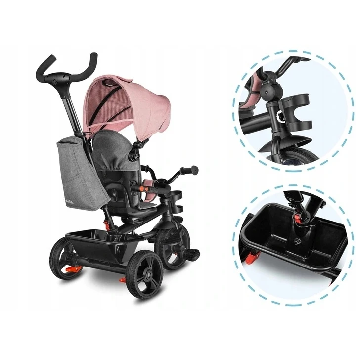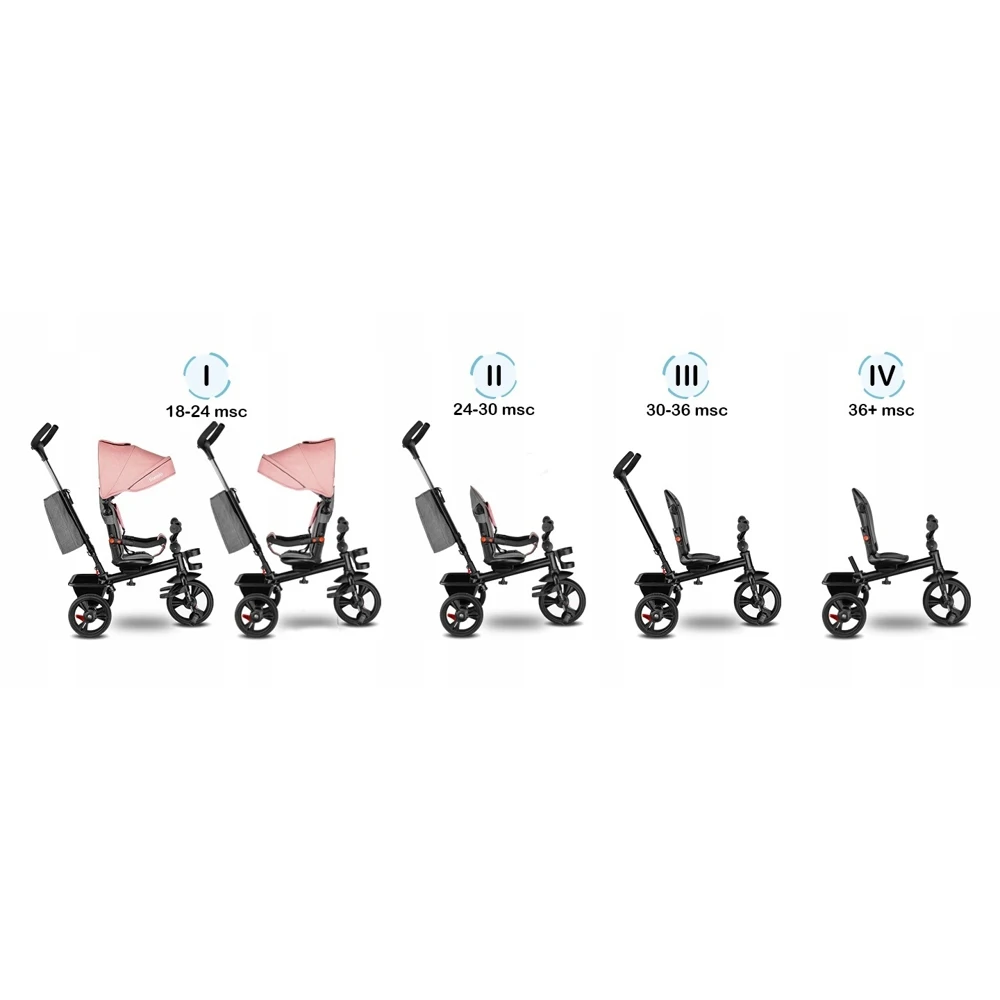 Высокая спинка сиденья с мягкой подушкой для комфортной и продолжительной езды 2 режима сиденья лицом к дороге / к маме.