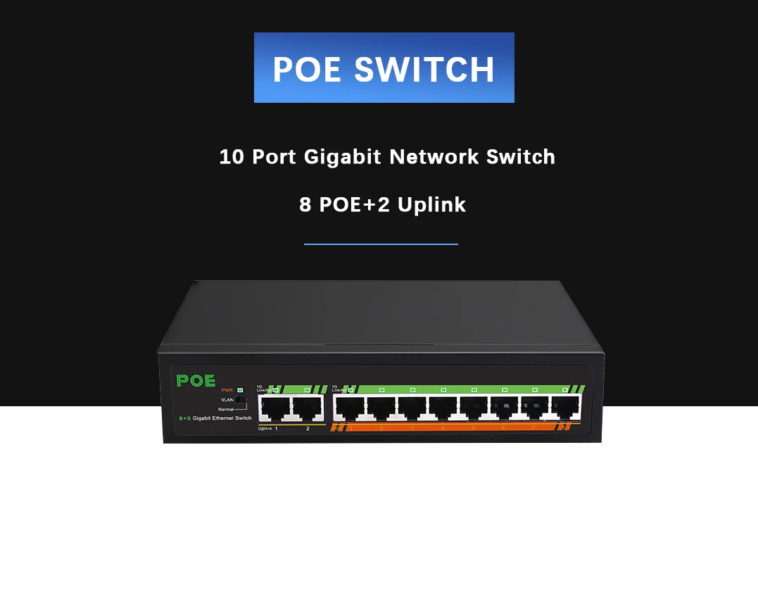 Это гигабитный коммутатор PoE, который обеспечивает 10 адаптивных портов RJ45 10/100/1000 Мбит/с и поддерживает переадресацию скорости провода на всех портах. Среди них 8 портов имеют функцию PoE, которая может использоваться в качестве оборудования для электропитания Ethernet. Он может автоматически обнаруживать и распознавать приемное оборудование в соответствии со стандартом IEEE 802.3at и IEEE802.3af, а также передавать сетевой кабель, обеспечивающий питание. Уникальная изоляция VLAN может удовлетворить различные требования к сетевому контролю безопасности. Независимый порт Uplink может гарантировать, что порт может легко справляться с резким высоким потоком и гарантировать, что канал восходящего канала разблокирован.