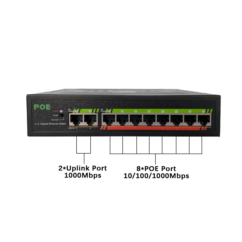 8 * портов 10/100/1000 Мбит/с POE сетевой коммутатор, 2*1000 Мбит/с Uplink порты, 120 Вт встроенный блок питания witch один щелчок VLAN RJ45 порт