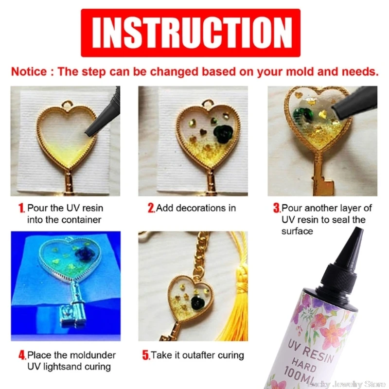 MAULTIPURPOSE: прозрачный УФ-клей используется для литья и нанесения покрытий, таких как изготовление ювелирных изделий, украшения для ремесел, аксессуары для одежды, инкапсуляционные предметы, литые фигурки и создание картин из смолы и т. д.