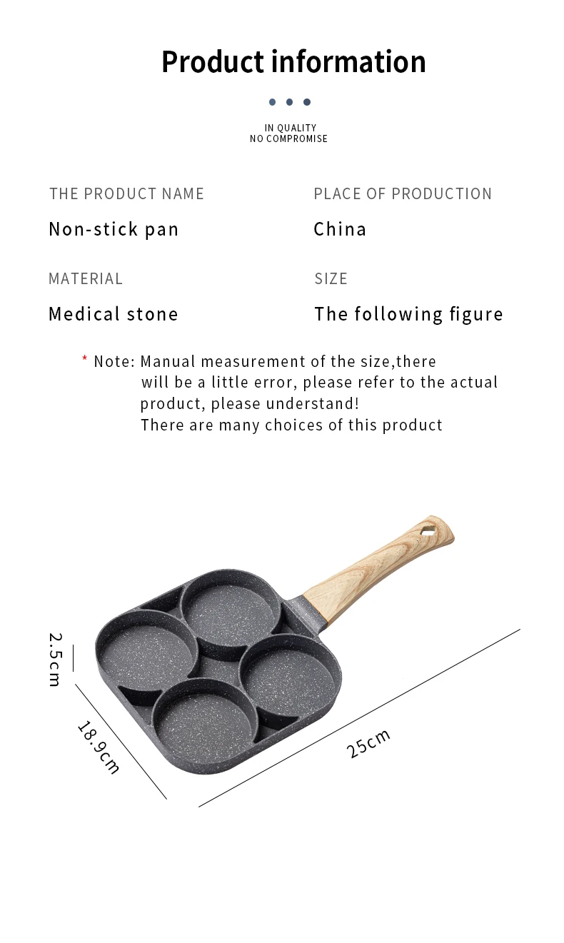 1. Сковорода изготовлена из специальных материалов и антипригарной. Он может жарить яйца и стейки очень хорошо, и еда производится красиво и вкусно.