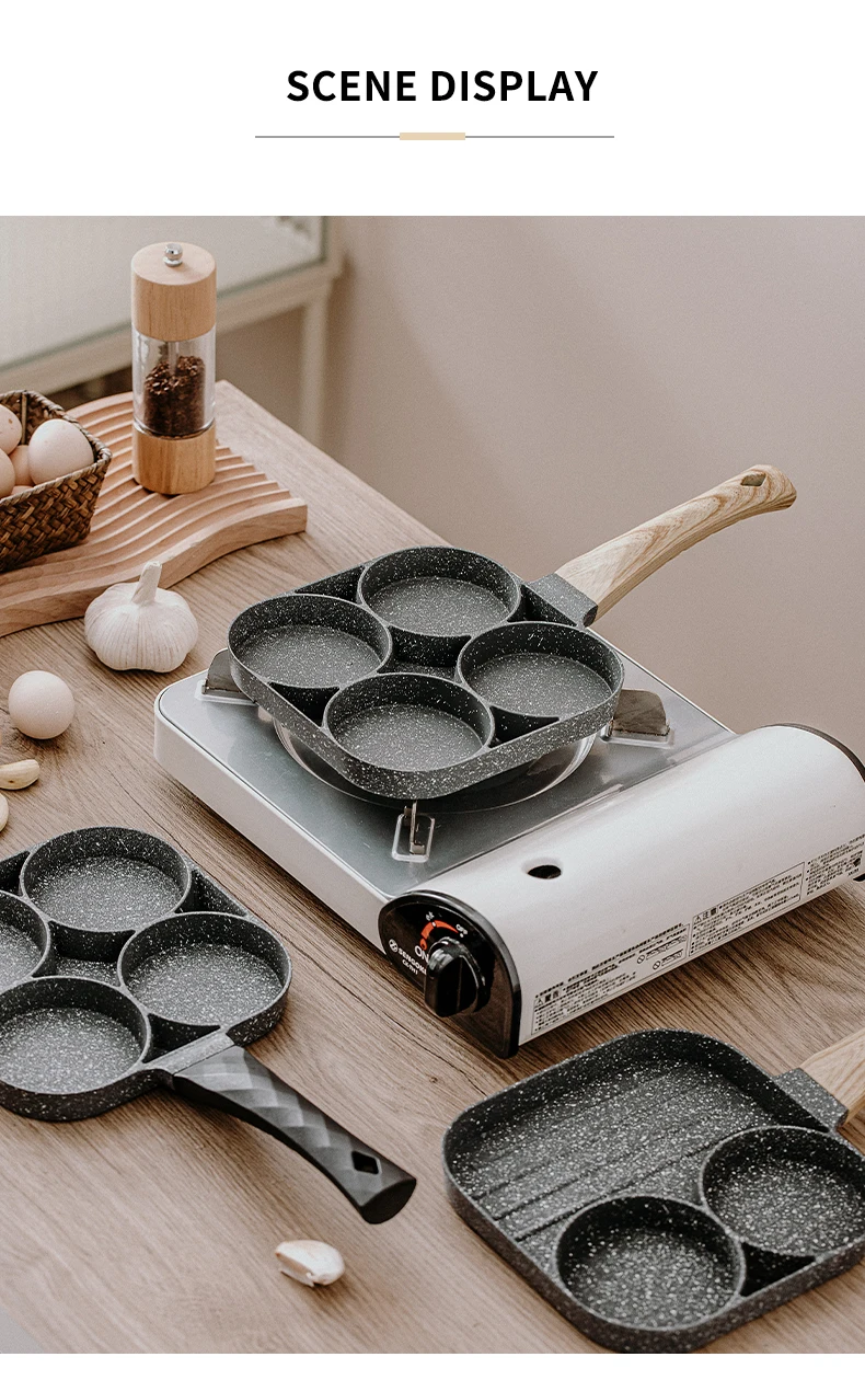 Сковорода 2/4 отверстие антипригарная Кастрюля кастрюля для кухни приготовления стейка яйцо блинница прочные антипригарные сковороды деревянная ручка сковорода набор