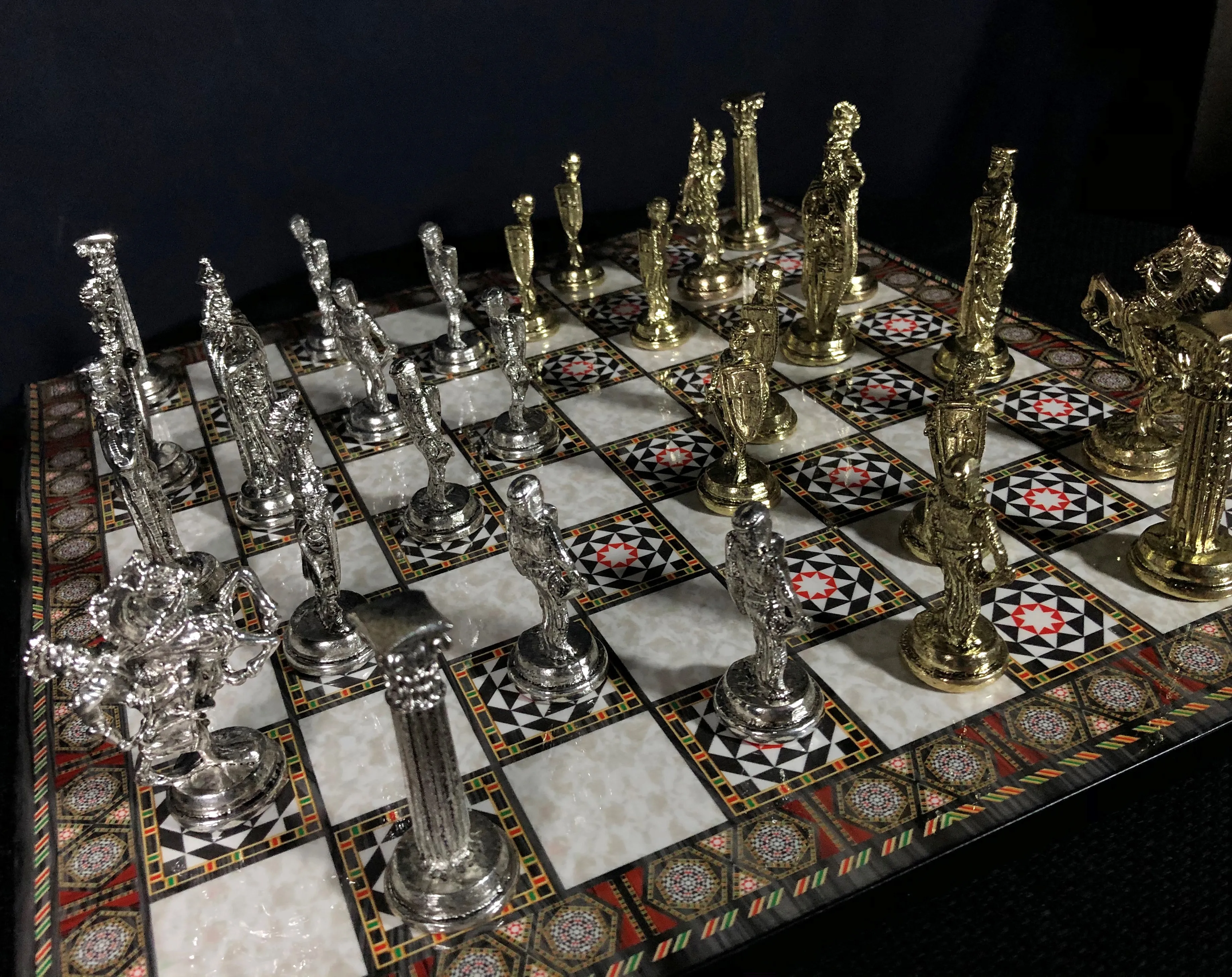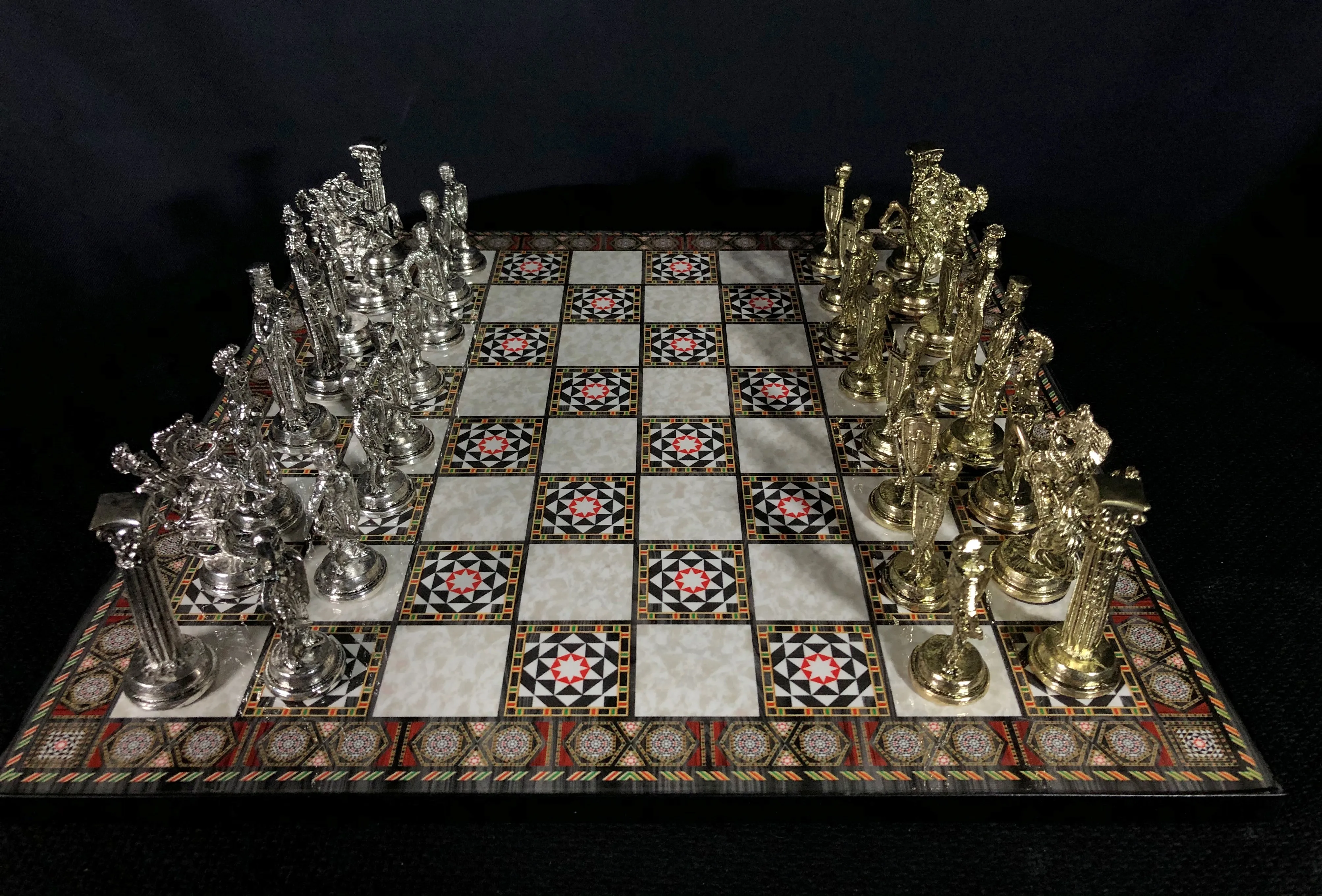 Шахматные фигуры этой шахматы были брошены с использованием высококачественного литейного материала. Детали шахматных фигур уточнены после литья, тщательно окрашены и покрыты лаком.
