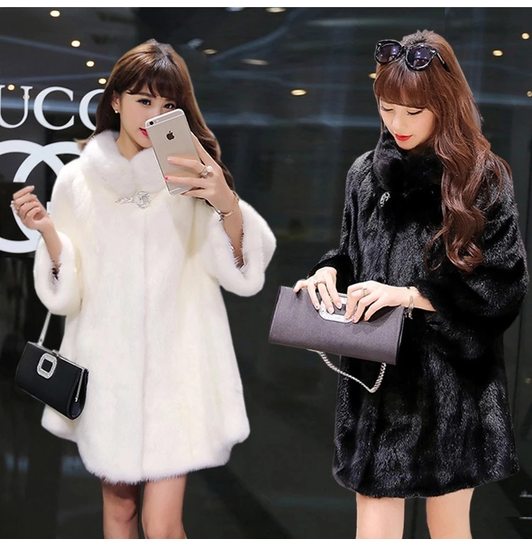 2021 Новое повседневное теплое мягкое осенне-зимнее меховое пальто женское меховое пальто средней длины корейское тонкое пальто из искусственной норки