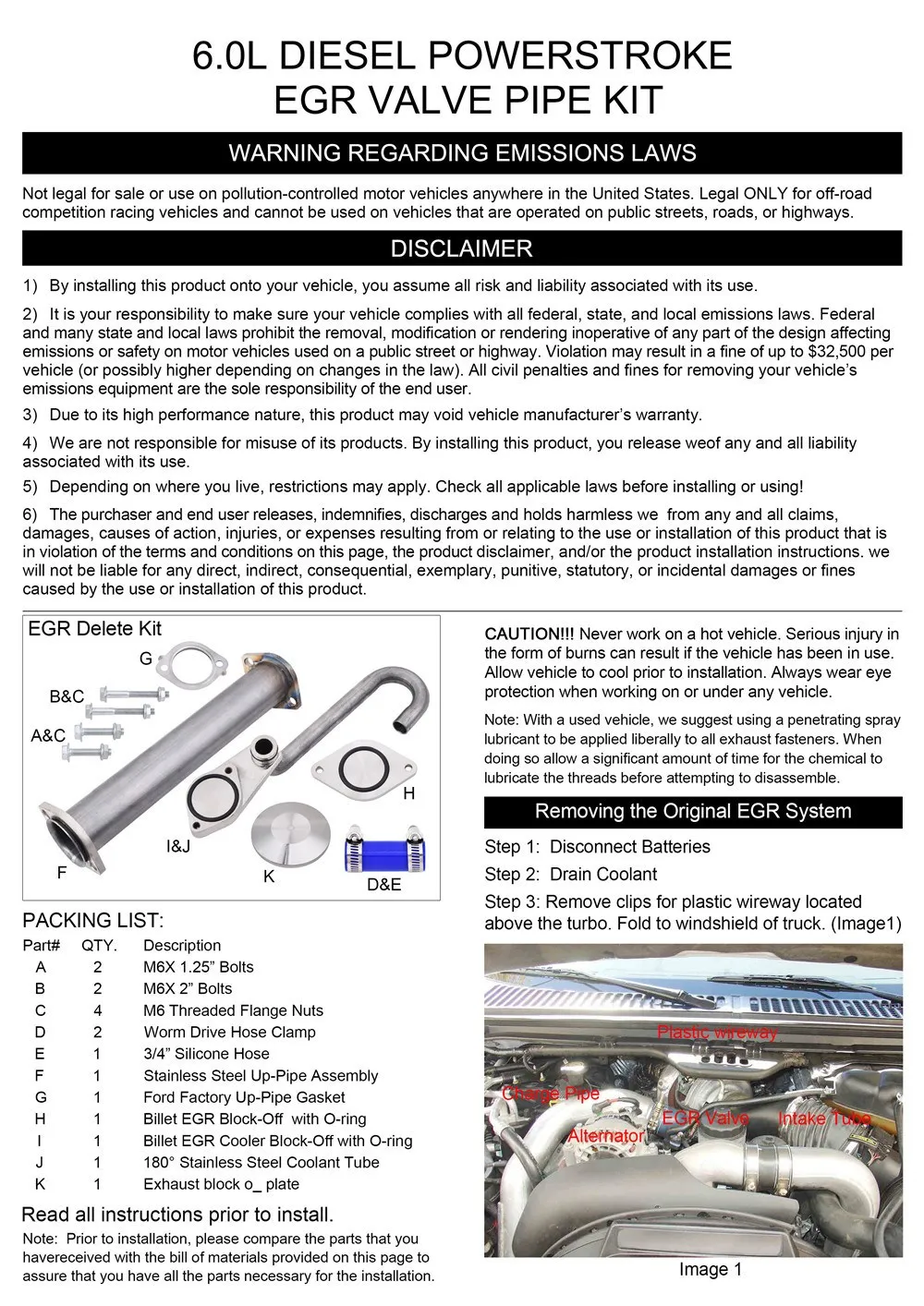 Отзывы о Семейный комплект труб EGR Bypass Delete Kit для 2003-2007 Ford F250 F350 F450 F550 V8 6.0L Powerstroke Diesel Turbo