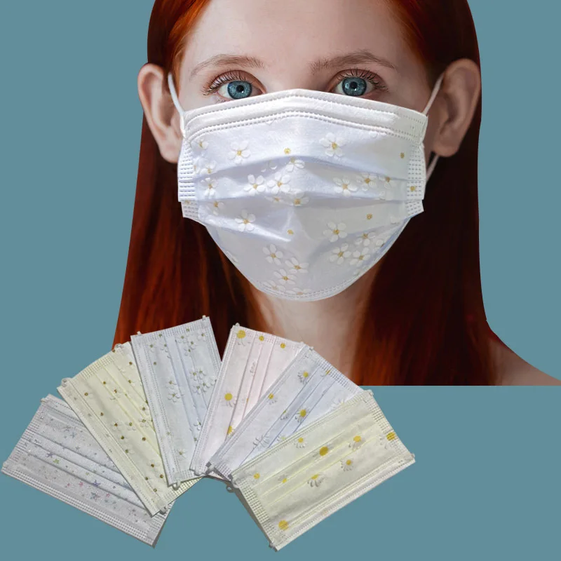 Продукты: Взрослый 3-х слойные одноразовые марлевые plum цветок с принтом маски