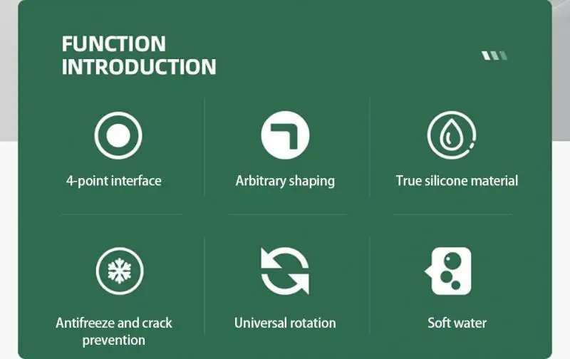 Пищевой силиконовый материал, мягкий и безопасный, нетоксичный и без запаха. Полностью медный интерфейс прочный и не ржавеет. Дизайн фильтра, богатая пена для предотвращения брызг воды.