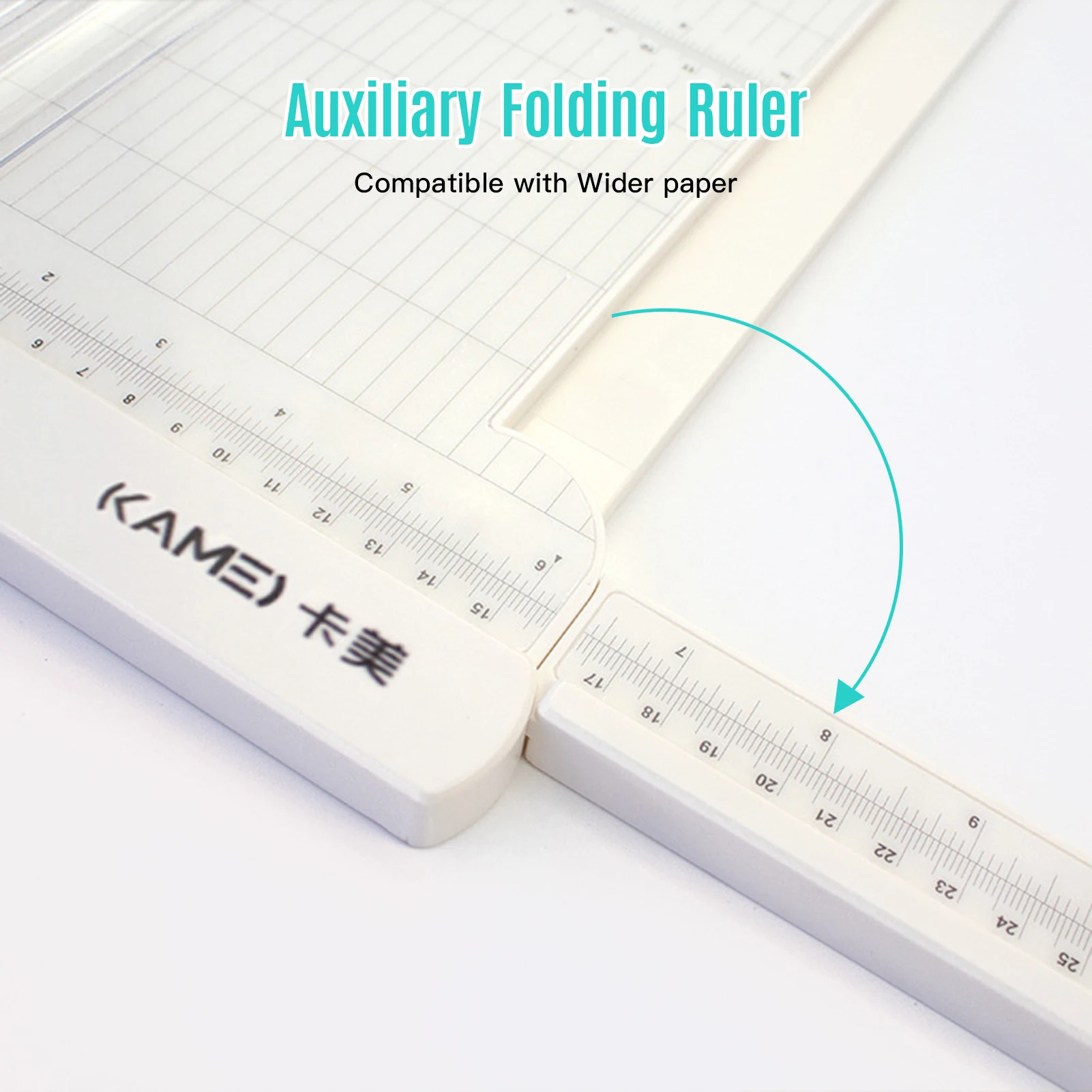 📏Вспомогательная складная линейка сбоку может поворачиваться для слияния с нижней частью для удлинения, так что она может быть совместима с более длинной бумагой.