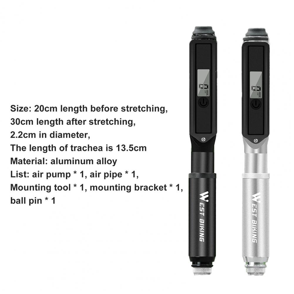 Пыленепроницаемый компактный велосипедный насос с электронным барометром, прочный мини-насос, портативный для MTBХарактеристики: