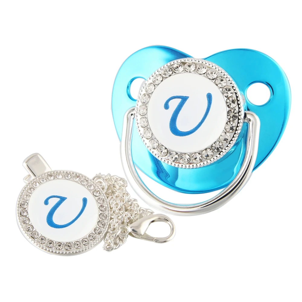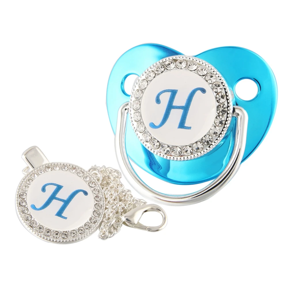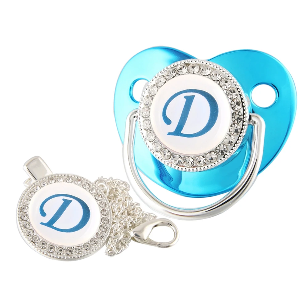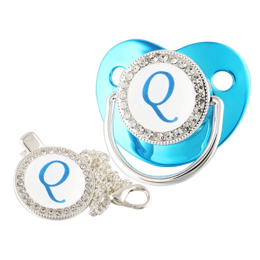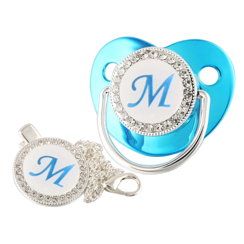 Металлический Синий Серебряный Роскошный зажим-держатель для детской соски 26 название Начальная буква Силиконовая пустышка Прорезыватель детский душ подарки