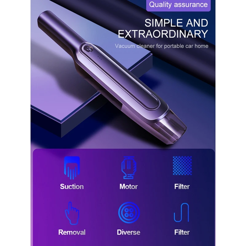 1. Супер всасывающая профессиональная очистка: пылесос имеет мощное циклонное всасывание до 6000 па. Двигатель мощностью 120 Вт, мощный портативный автомобильный пылесос специально разработан для вашего автомобиля.