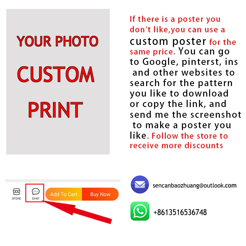 Если есть плакат, который не подходит, вы можете использовать пользовательский плакат, цена такая же. Вы можете перейти в Google, pinterst, ins и другие веб-сайты, чтобы найти шаблон, который вам нравится, чтобы загрузить или скопировать ссылку, и отправить мне скриншот, чтобы сделать плакат, который вам нравится. Следуйте за магазином, чтобы получить больше скидок