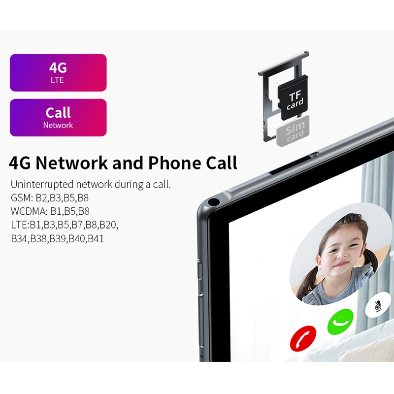 Бесперебойная сеть во время вызова. GSM: B2,B3,B5,B8 WCDMA: B1,B5,B8 LTE:B1,B3,B5,B7,B8,B20, B34,B38,B39,B40,B41