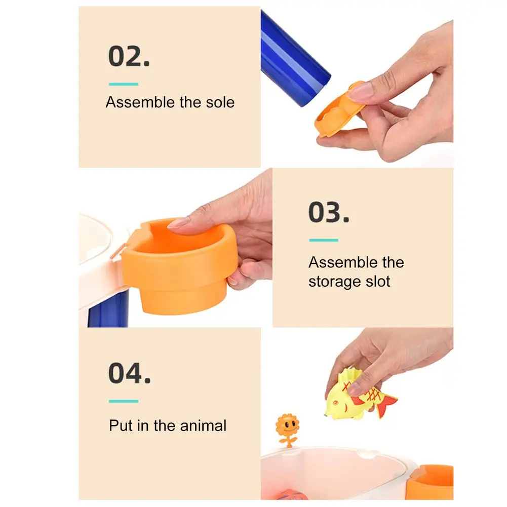 3. Играйте в воде с помощью трюков: Налейте чистую воду в игрушечный стол, чтобы положить в игрушечный стол такие игрушки, как маленькие рыбки и шарики, что позволяет детям развивать свои интересы с раннего возраста. Хранение игрушечного стола имеет большую внутреннюю емкость, чтобы облегчить хранение игрушек после игры.