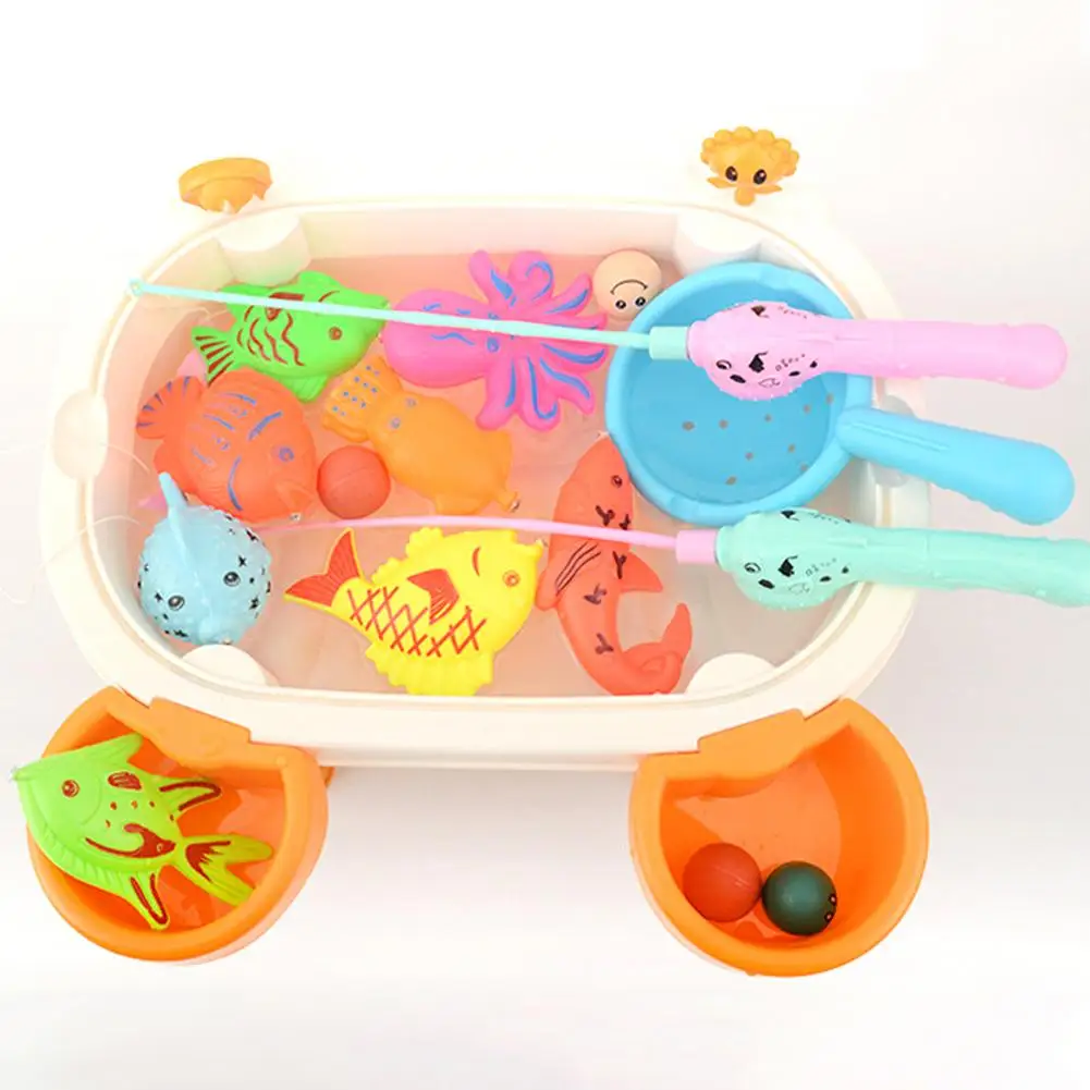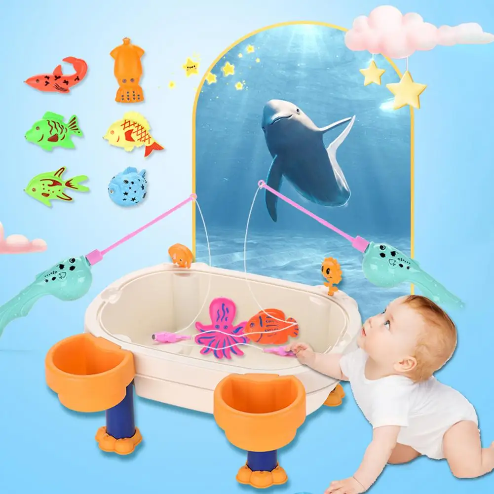 Описание:1. Набор игрушек для рыбалки: Этот набор для рыбалки очень подходит для вашего ребенка. Этот набор является хорошим способом вовлечения вашего ребенка, и он может способствовать развитию ранних навыков и характера. С помощью этого набора игрушек для рыбалки вы можете заполнить контейнер для рыбы, и ваш ребенок может собрать и подсчитать количество рыбы!