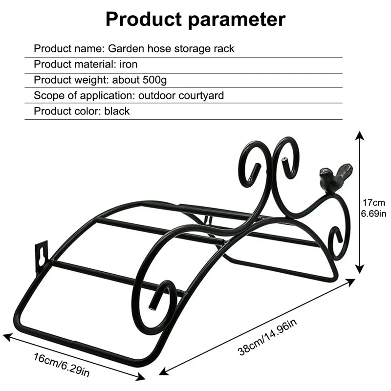 1. Благодаря простому внешнему виду и гладким линиям этот держатель для садового шланга идеально подходит для использования в вашем патио, помогая вам хранить шланг для полива и украшать стены.2. Изготовлен из высококачественного железного материала и покрыт черной краской для выпечки, держатель шланга прочный и устойчивый к ржавчине.