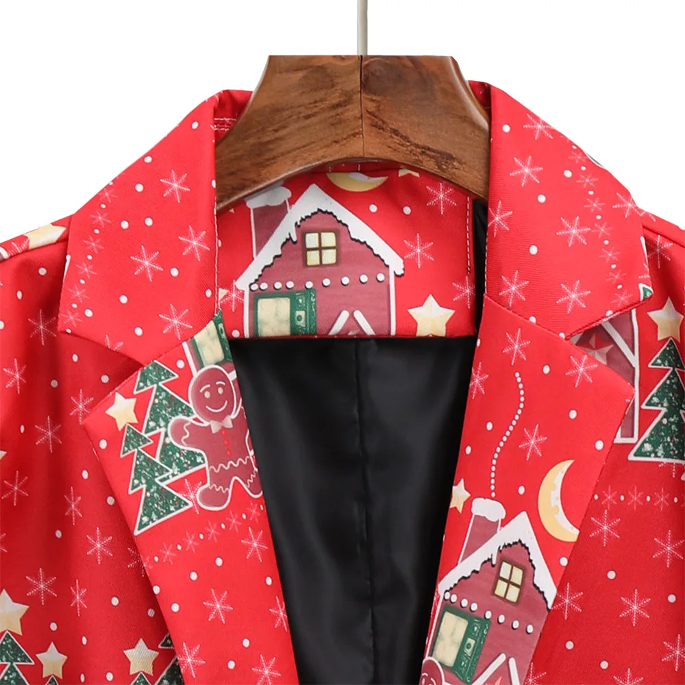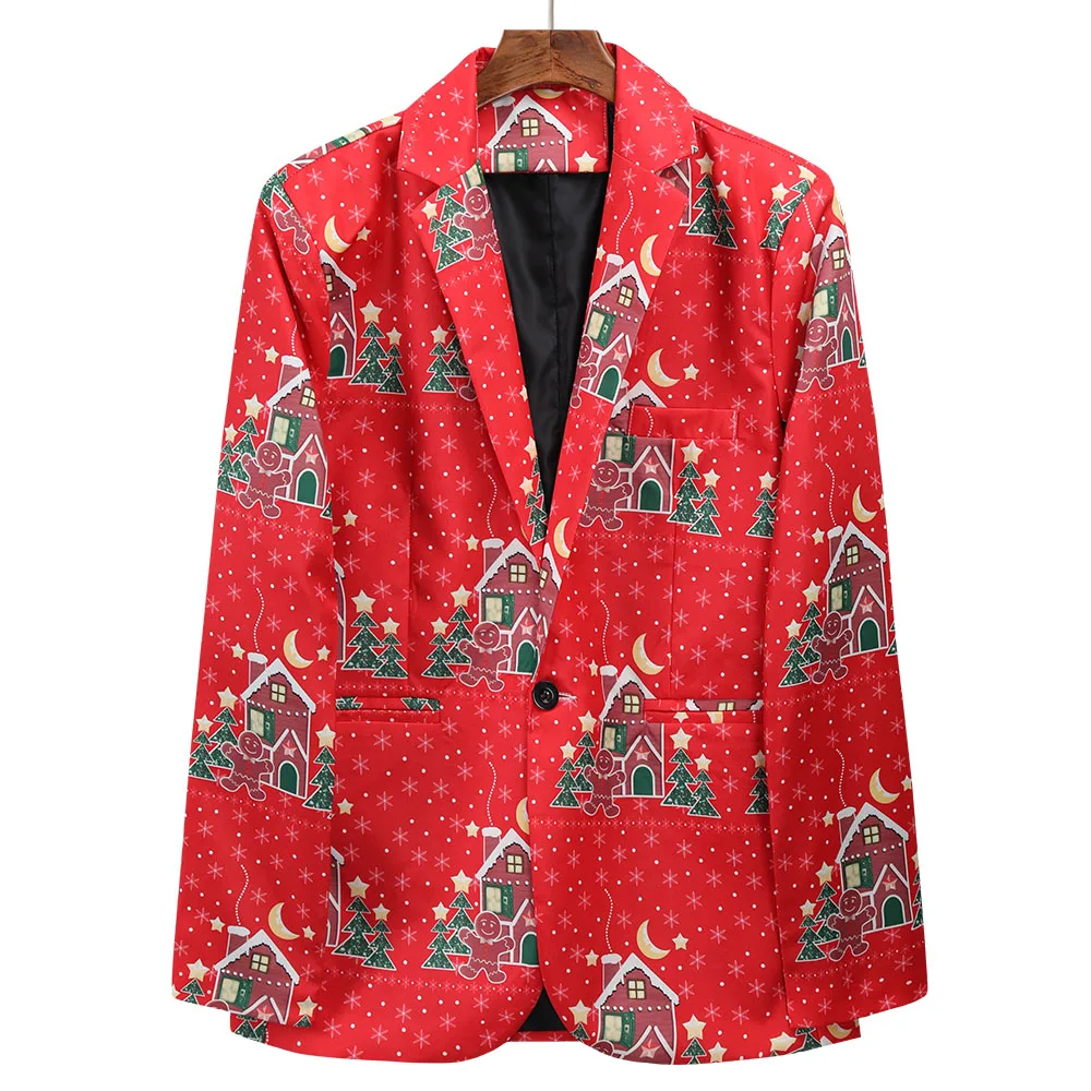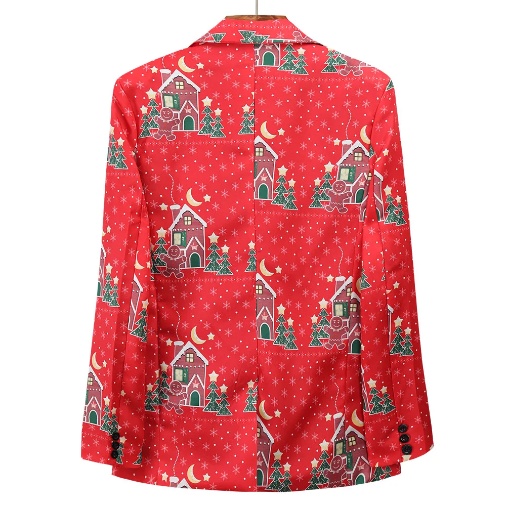 Зимний Рождественский стиль, мужской повседневный костюм с 3D рождественским принтом, китайский красный модный костюм, куртка для мужчин, блейзер