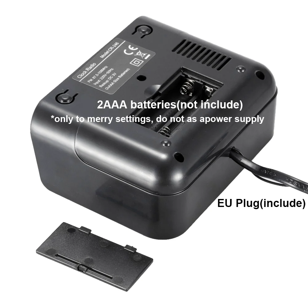 Штепсельная Вилка европейского стандарта обеспечивает рабочую мощность часов. 2 батарейки AAA не обеспечивают питание часов и используются только для запоминания настроек в случае сбоя питания.