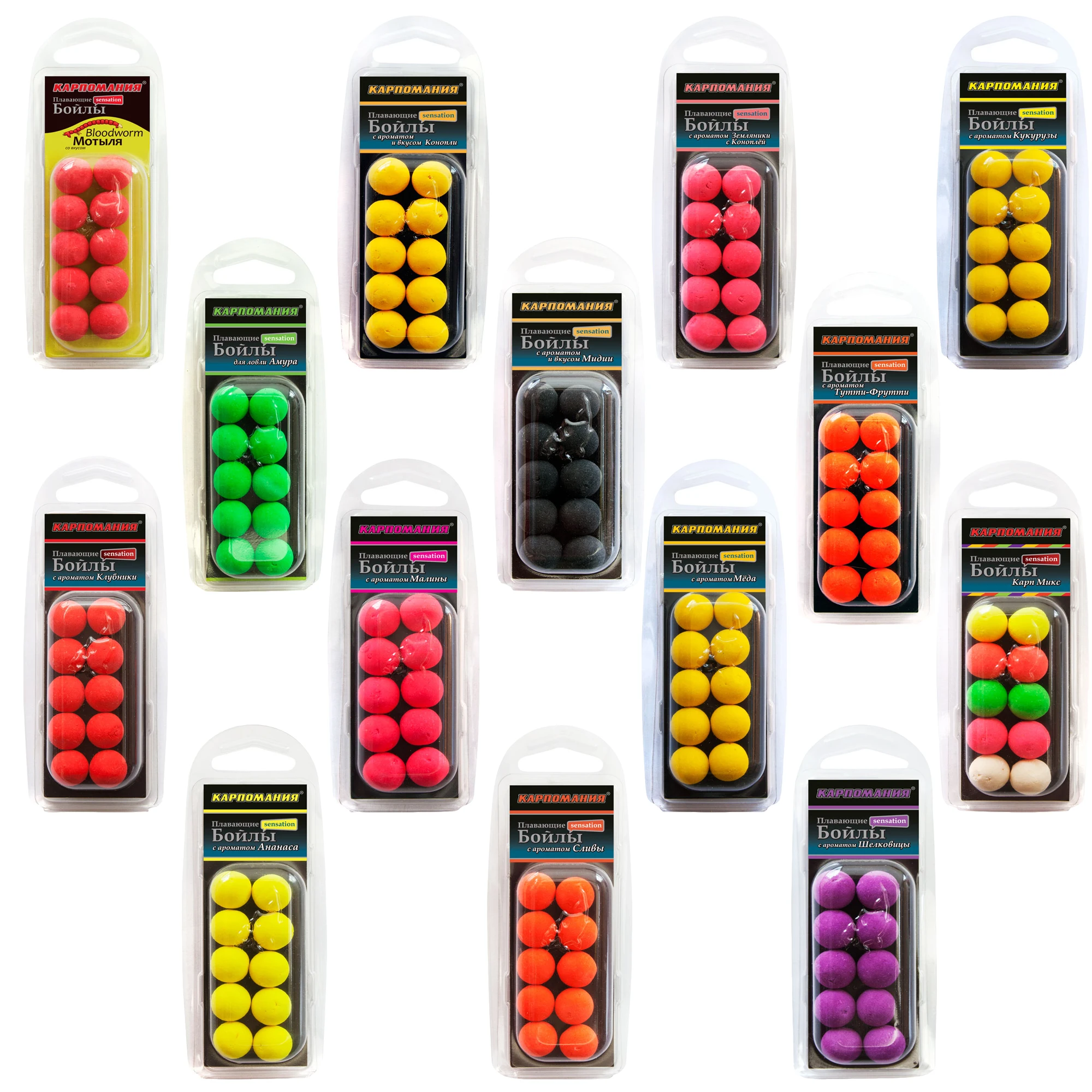 This series was created in 2012. The very first series of floating Boyles. Every year the composition was refined and improved. To date, we have made great progress in the production of floating Boyles. They are not inferior to efficiency, foreign analogs. The composition includes ingredients, with a high content of proteins of vegetable and animal origin, filled with flavors and dyes of the world's leading manufacturers. Also used are special additives that give Boyles buoyancy. Different from other types of Boyles in that they can fish on any waters, even in the most difficult conditions, for example in grass or ilu. You can catch both on the Boyles themselves and in combination with other nozzles (boils are dusty and sinking, peas, corn).