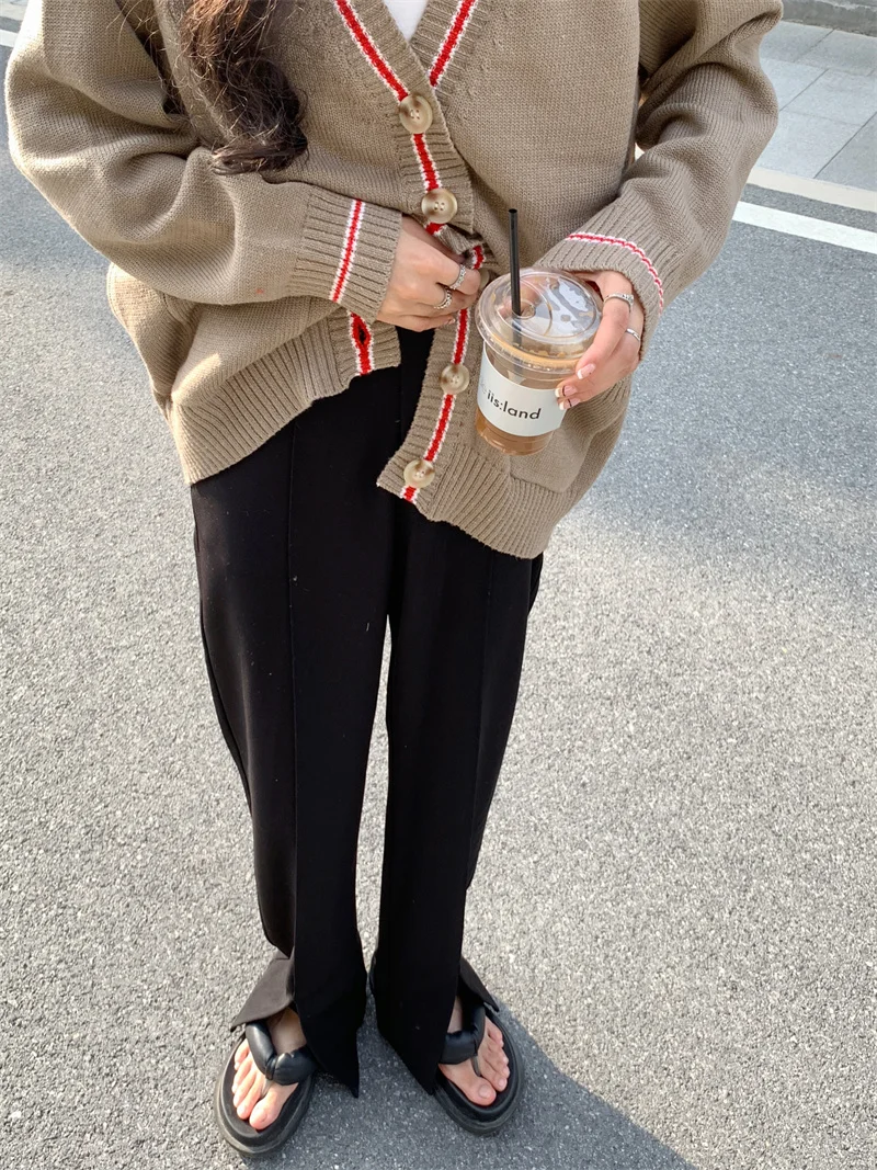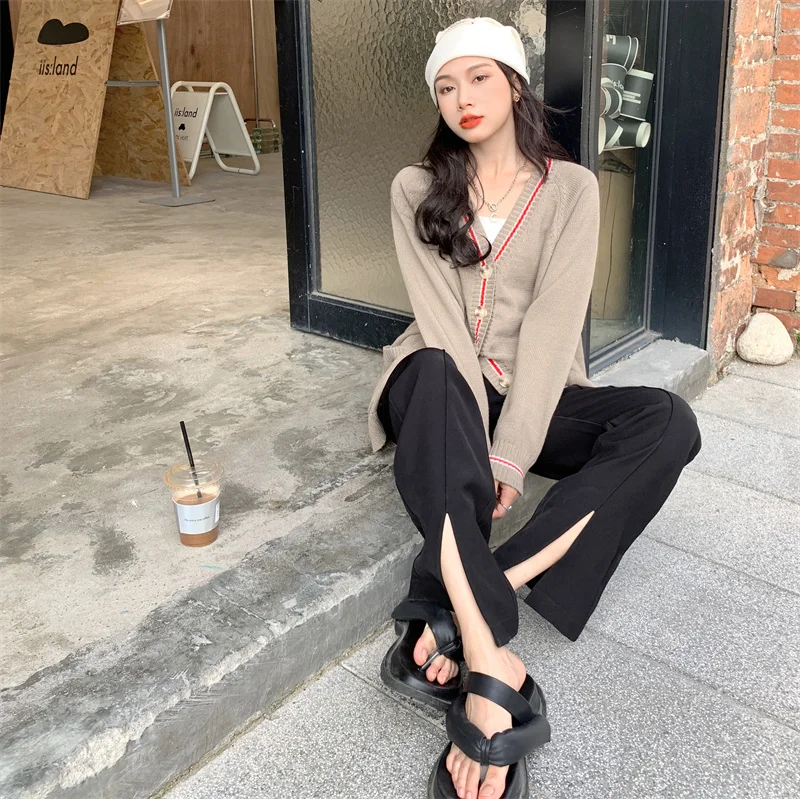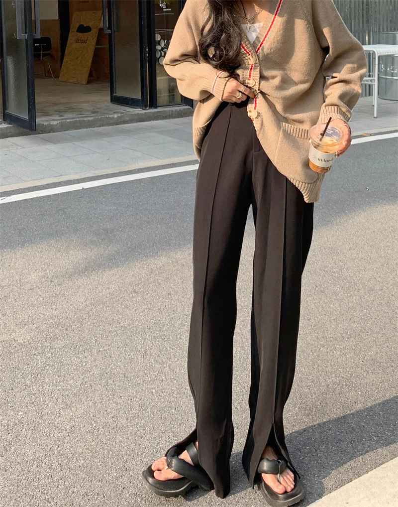 Отзывы о Брюки с разрезом женские осенние высокой талией стройнящие свободные
